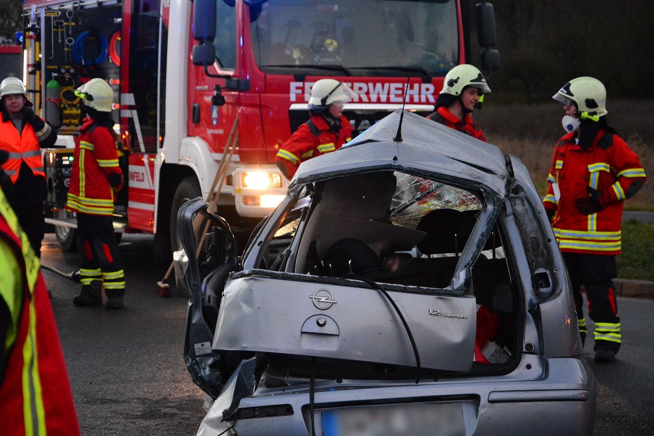 Die aus dem Raum Schweinfurt stammende Fahrerin wurde in ihrem Pkw eingeklemmt und musste von der Feuerwehr gerettet werden. Ein vom Rettungshubschrauber gebrachter Notarzt versorgt die Frau vor Ort, im Anschluss wartete bereits der Rettungsdienst darauf, die lebensgefährlich Verletzte in ein Krankenhaus zu bringen.