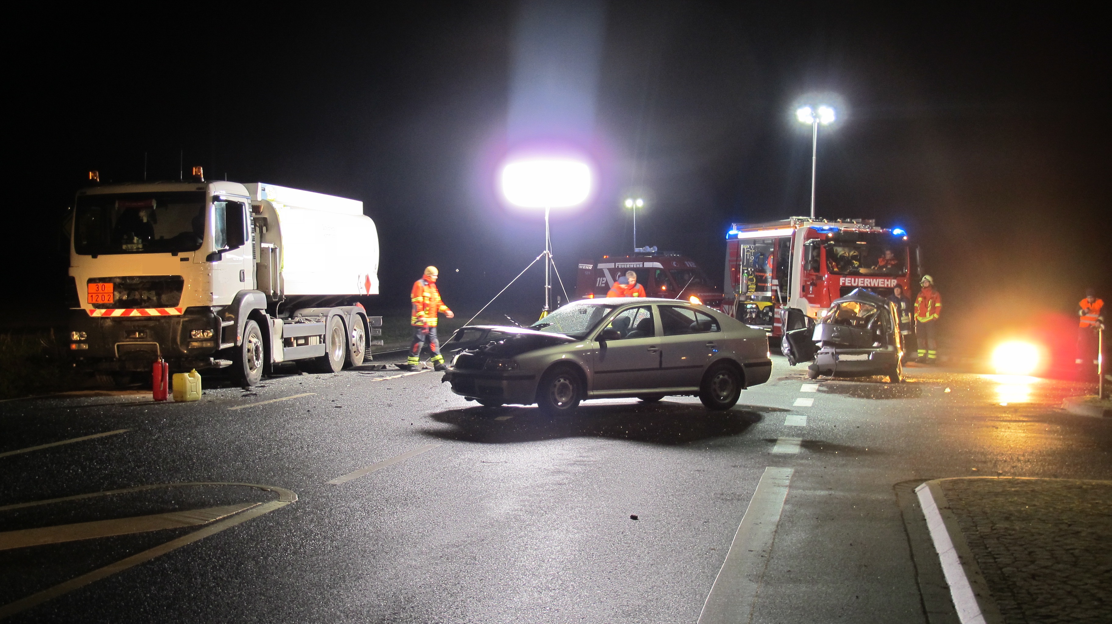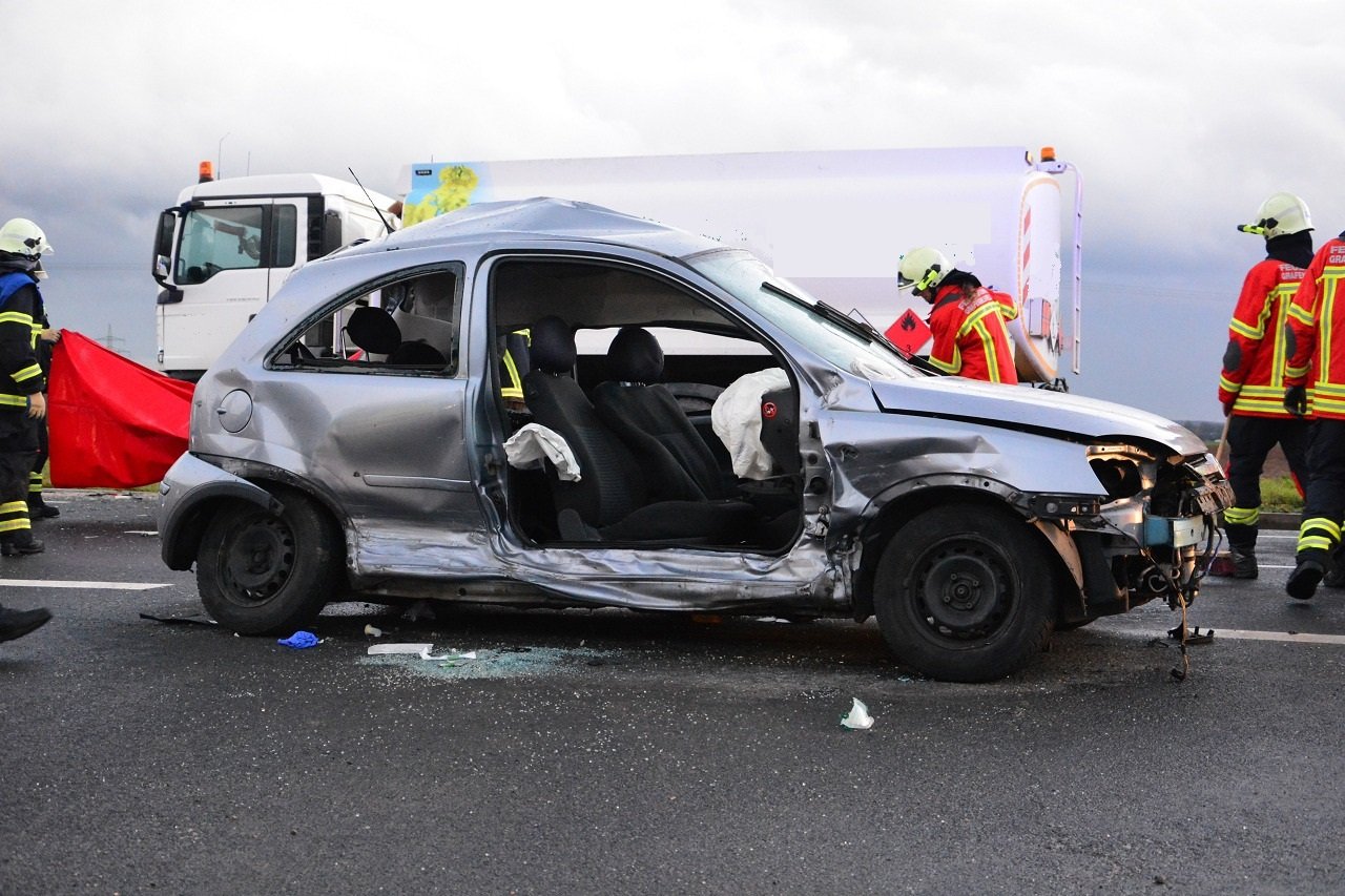 PKW prallt gegen Tanklastzug
