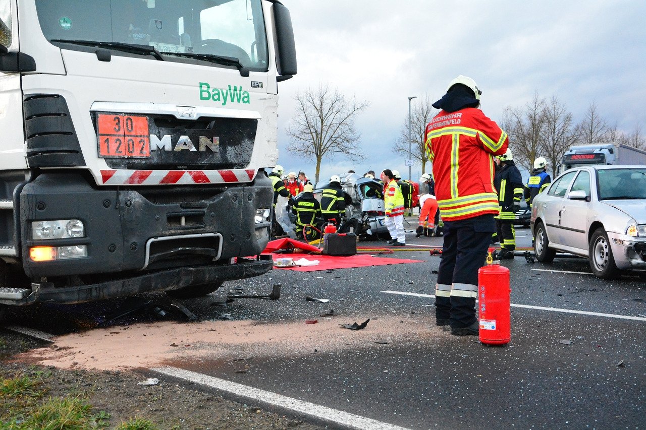 Der Fahrer eines Skoda Oktavia hatte gegen 15:50 Uhr vor, aus der Europaallee nach links in die Gochsheimer Straße in Richtung Gochsheim abzubiegen. Der 70-Jährige übersah dabei offenbar eine 35 Jahre alte Fahrerin eines Opel Corsa, die auf dieser Straße aus Gochsheim kommend in Fahrtrichtung Grafenrheinfeld unterwegs gewesen war. Die Frau versuchte noch, dem Skoda auszuweichen. Das Fahrzeug touchierte ihren Corsa allerdings dennoch, sie geriet ins Schleudern und auf die Gegenfahrbahn. Dort prallte die Frau anschließend mit der Beifahrerseite des Opels gegen die Fahrzeugfront eines entgegenkommenden Tanklastzuges.